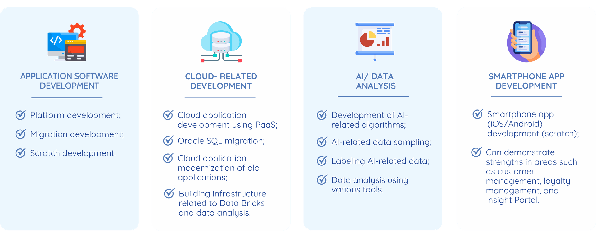 Với kinh nghiệm tư vấn và phát triển phần mềm, chúng tôi đã có cơ hội hợp tác với các doanh nghiệp xây dựng hàng đầu Nhật Bản xây dựng hệ thống phần mềm (bao gồm website quản lý và ứng dụng máy tính bảng) góp phần vào quá trình số hóa của doanh nghiệp.