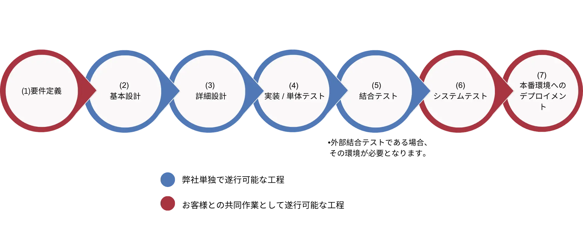 各案件の開発においては品質を維持する為に上記の7ステップを厳守しています。